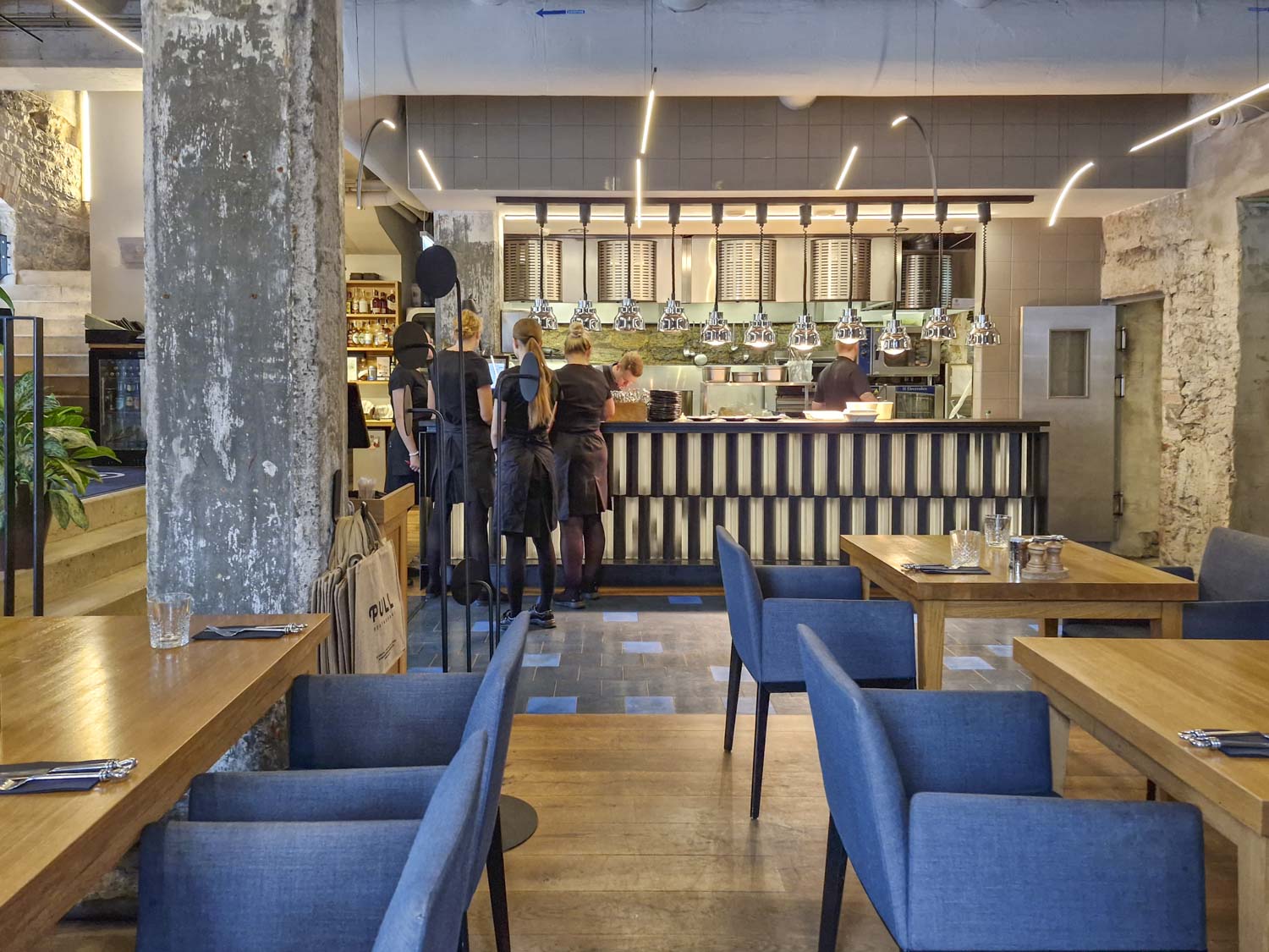 Pull, joka tunnetaan erityisesti liha-annoksistaan, ei ole ihan kaupungin edullisimmista päästä. Lounaalla saat kuitenkin nauttia Pullin keittiön osaamisesta edullisemmin, sillä tarjolla on päivän ja viikon lounasannoksia.