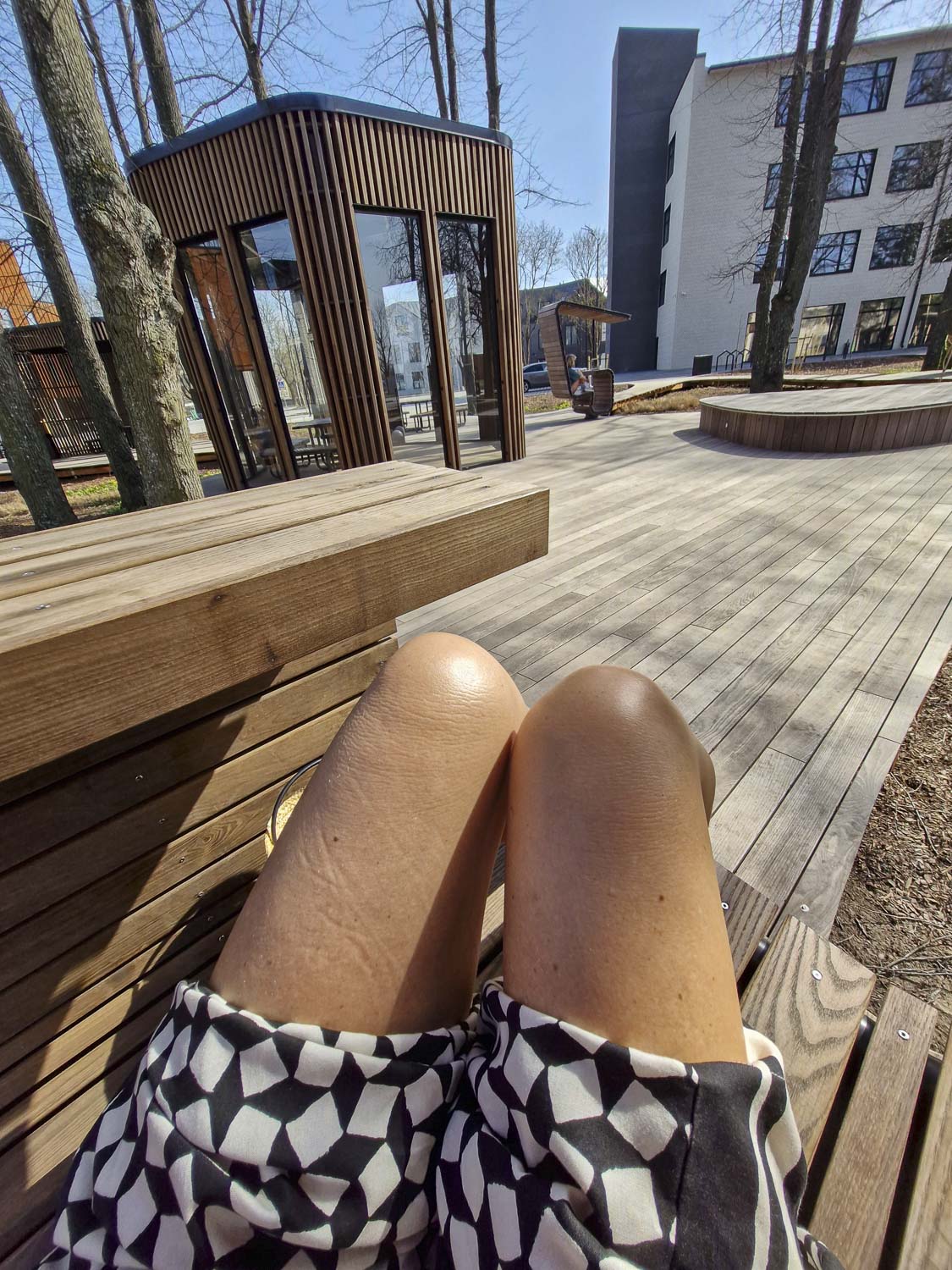 Sumi on vauhdilla kehittyvän Krullin alueen laidalla. Munkkikahvien jälkeen siirryin lueskelemaan pieneen puistikkoon, jossa on mainioita lepotuoleja ja istuskeluryhmiä. Alue on taidettu rakentaa hiljattain auenneen Wisen pääkonttorin työntekijöille.