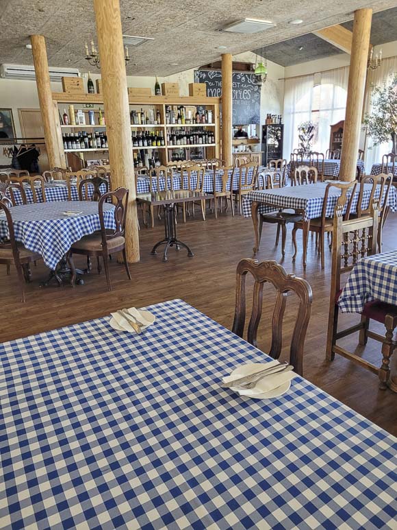 Kadriorgin puiston laidalla olevan talon alakerrassa olevasta Taverna del Gallo Nerosta löytyy niin punavalkoruudulliset liinat kuin välimerellisen näköiset kalusteetkin.