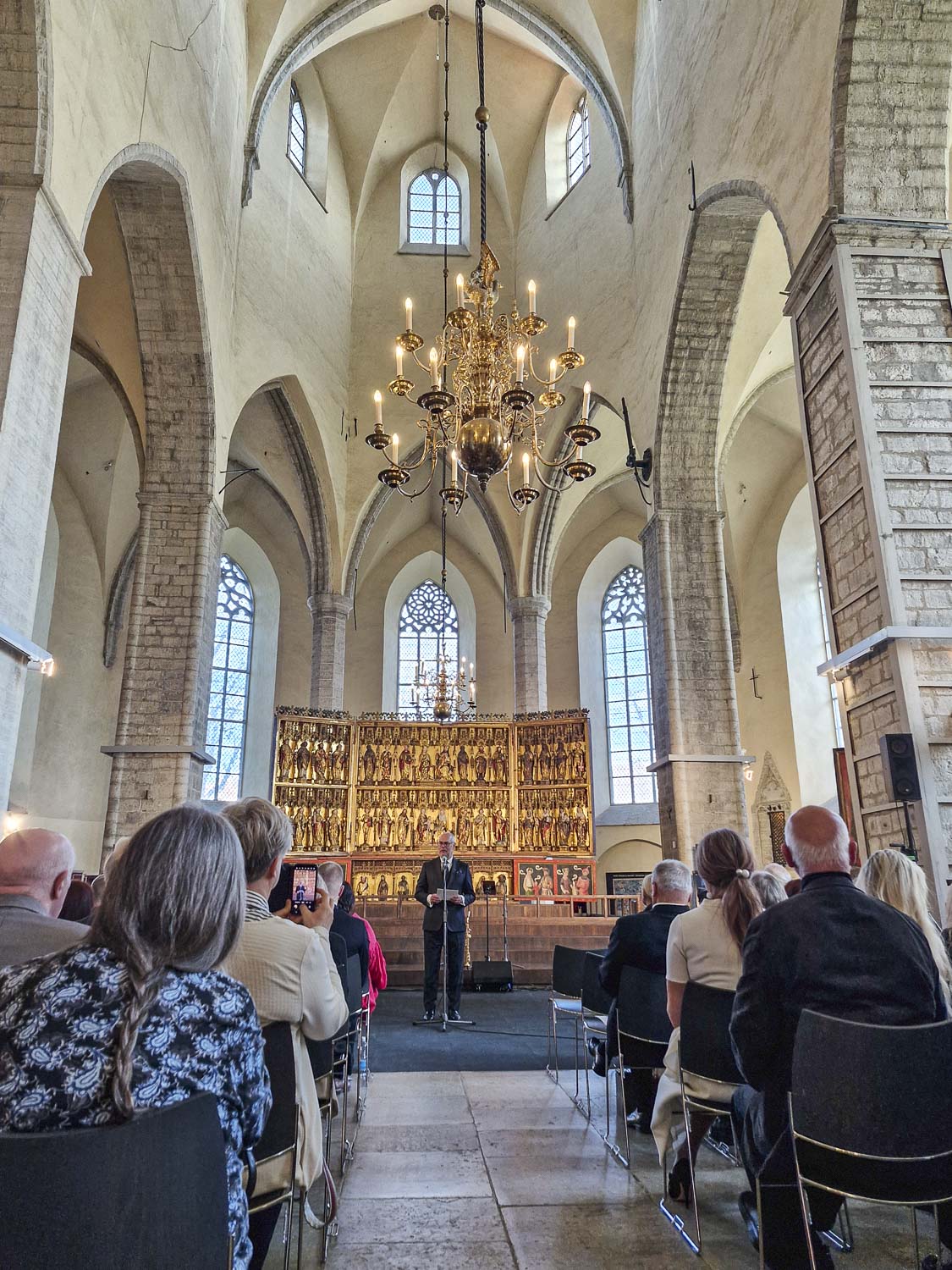 Päivä huipentui illalla Nigulisten museon Virolainen kirjallisuus 500 vuotta -näyttelyn avajaisjuhlaan. Paikalle saapui myös Viron presidentti Alar Karis puolisoineen, ja virolaiseen tapaan tunnelma oli rento ja epämuodollinen.
