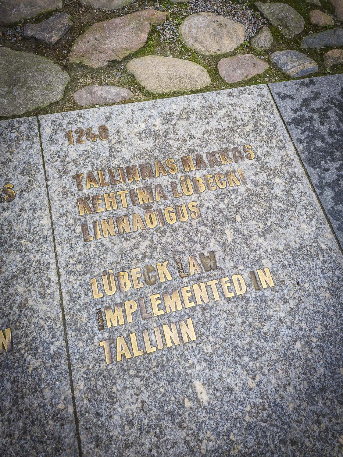 Loirilta lähdin kävelemään Maiasmokkiin, jonka muistelin olevan aamuisin aikaisin auki. Matkalle osui Suurkillan talon vieritse kulkeva porttikäytävä, jonka katukivetyksessä on messinkikirjaimin Viron historian aikajana.