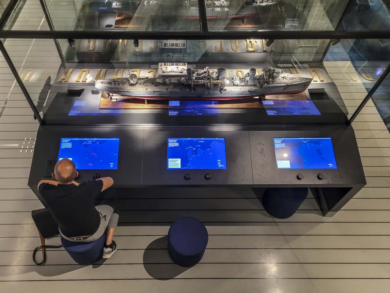 Museohallin halki kulkevalta kävelysillalta saat startattua sukellusveneen kylkeen heijastettavia lyhyitä animaatioita, jotka kertovat millaista oli sukellusveneen miehistön elämä. Juonipaljastus: ei kovinkaan hohdokasta!