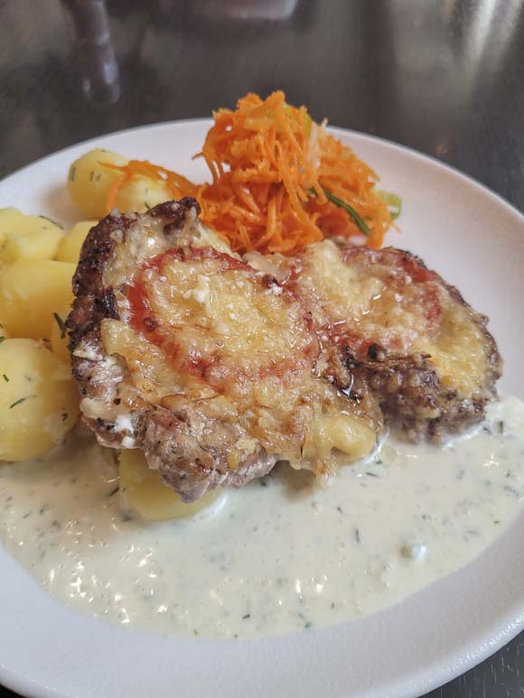 Ruoka tilataan tiskiltä, ja lautasellisen saa saman tien mukaansa. Lisuke- tai kastiketoivetta kysyttäessä olen joskus jäänyt hetkeksi änkyttämään kielimuurin äärelle, mutta se on ylittynyt sekalaista suomi–viro–englanti-sekakieltä sopertamalla tai viittomalla.
