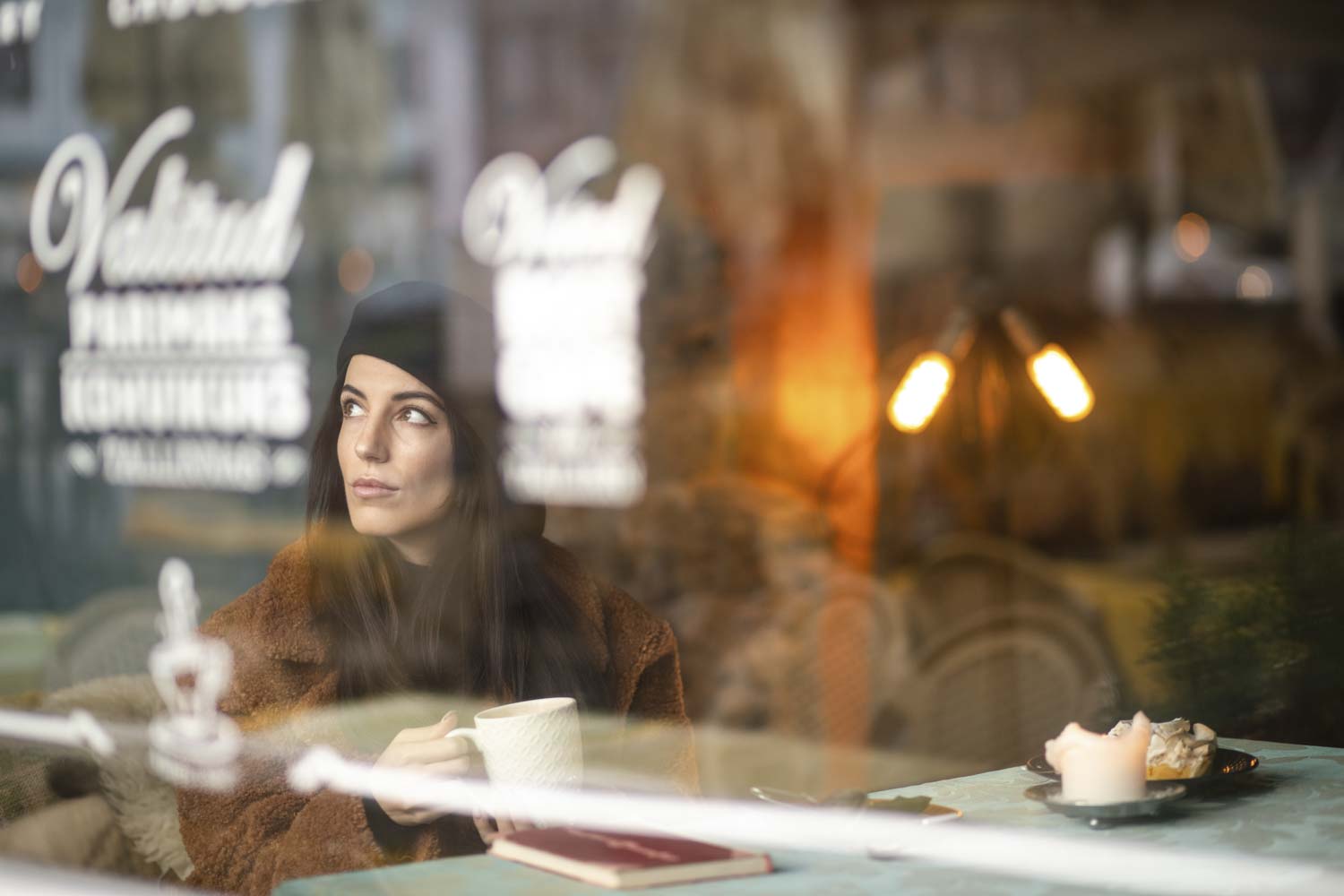 On kivaa katsella ulkona kiiruhtavia ihmisiä, kun itse istuu lämpimässä sisällä!