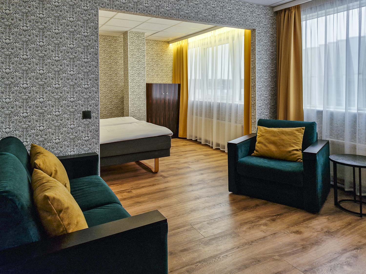 Junior-sviittien parvekkeilta aukeaa näkymät Vanhankaupungin suuntaan, ja niissä on myös vuodesohvat ja kylpyammeet. Kaikkein suurimmat huoneet ovat sviittejä, joita voi varata yöpymisen lisäksi vaikkapa muutaman ihmisen kokoontumisiin.
