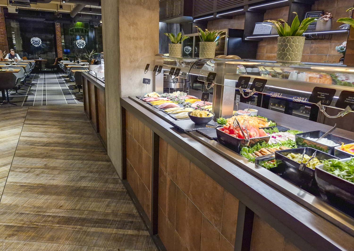 Hotellipuolen alakerran ravintola Noonbox tarjoilee painon mukaan hinnoitellun buffet-lounaan – harvinaisuus Tallinnassa!