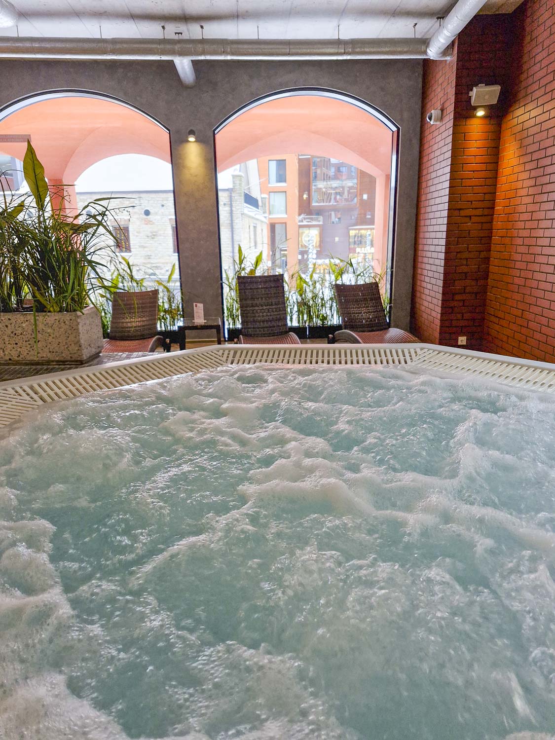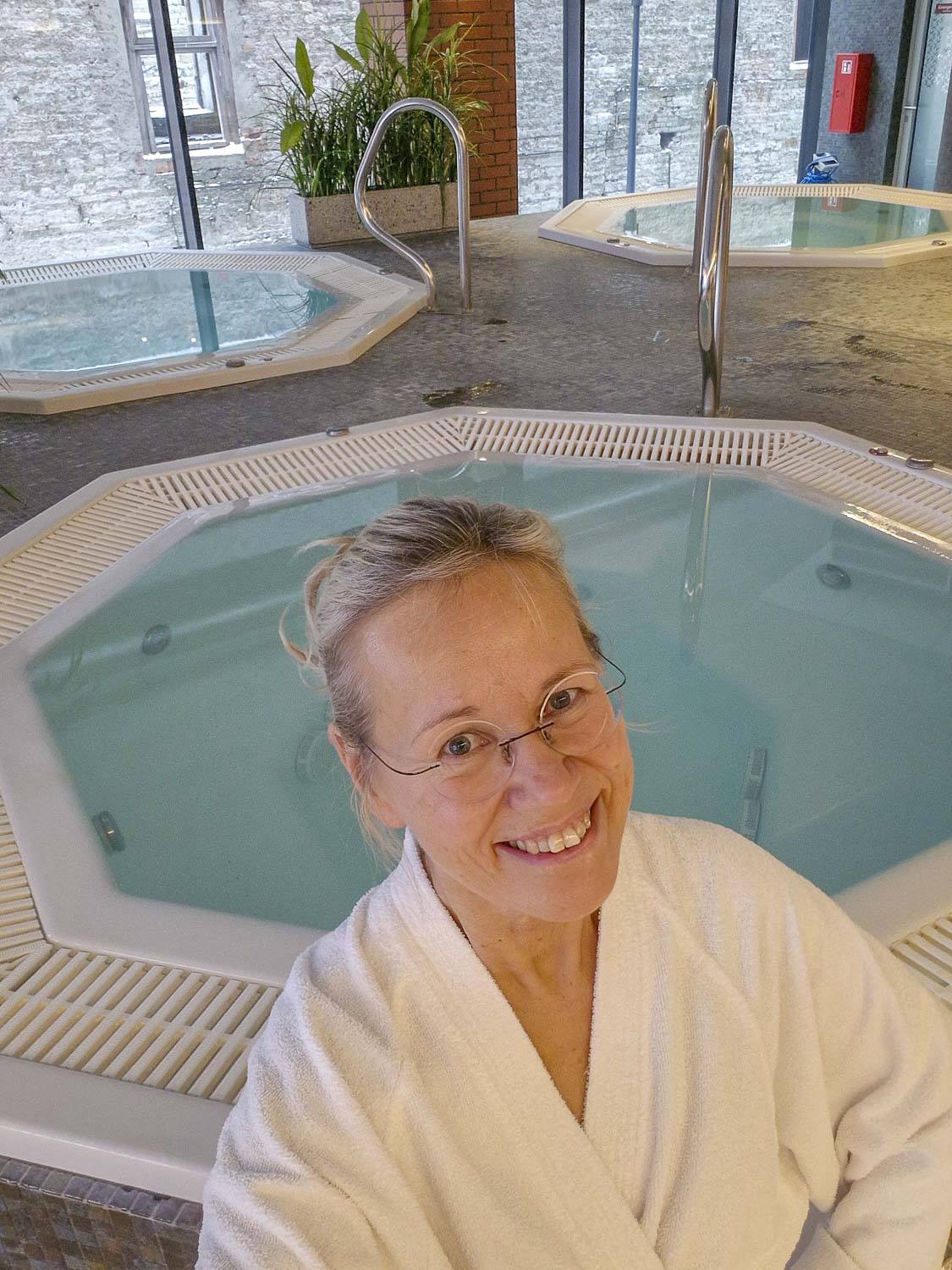 Kiva juttu oli myös se, että porealtaitakin oli neljä. Vilkkaammankin sesongin aikaan poreissa mahtuu siis nauttimaan paljon kylpylävieraita. Tykkäsin siitä, että poreallasalueelta on näkymät Rotermannin korttelin keskusaukiolle.