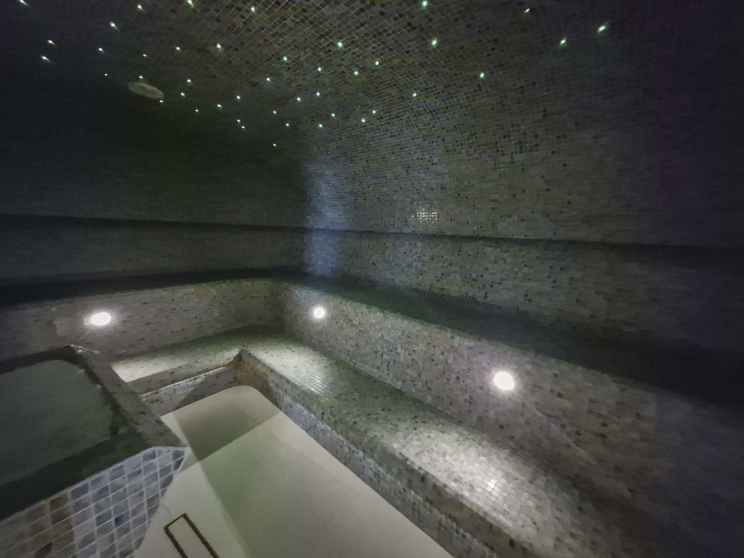 Kylpylä ei ole suuri, mutta hotellin spa-osastoksi saunavalikoima on yllättävän monipuolinen – yhteensä neljä erilaista. Oma suosikkini oli suolasauna, jossa voi kuoria ihon merisuolalla – harvinaista herkkua hotellikylpylöissä. Plussaa myös virkistävästä jääsuihkusta!