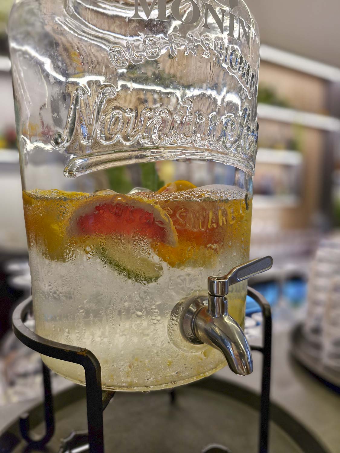 - Kylpyläosastolla on baari, joten omaa vesipulloa ei välttämättä tarvita. Baaritiskin päällä on myös sitrusvettä, jota voi nauttia ilmaiseksi.