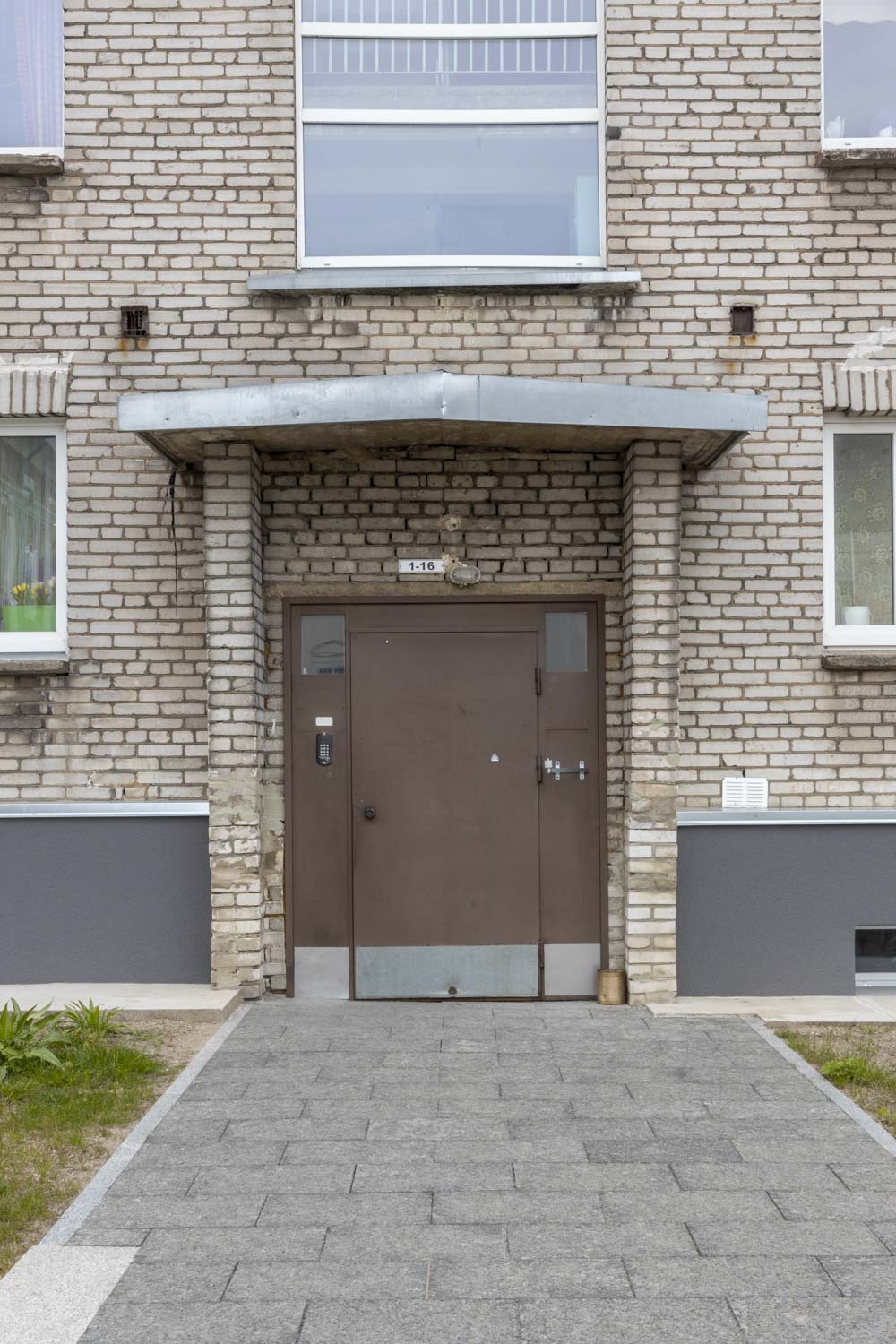 Se on modernia arkkitehtuuria, mutta kun seisoo sitä vastapäätä olevan hruštšovkan oikeanpuoleisen oven kohdalla, rakennuksen fasadi näyttää samalta kuin torin laidalla ollut tuhoutunut pörssitalo.