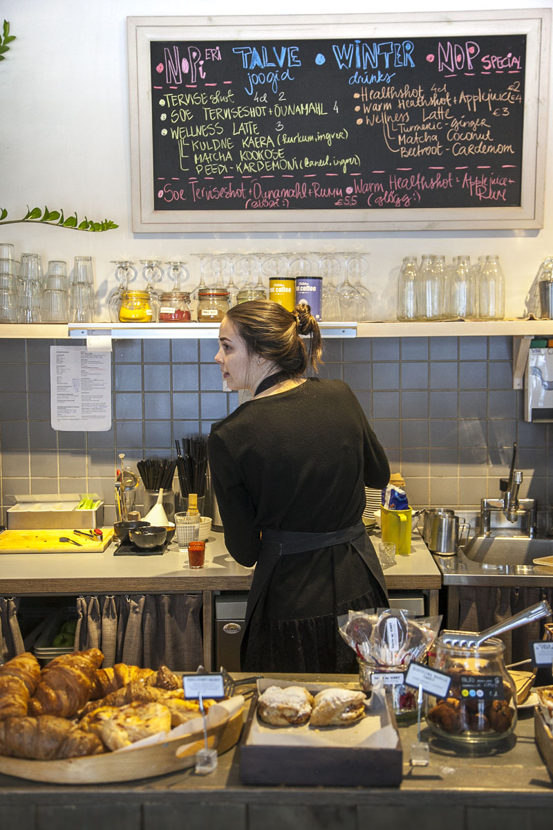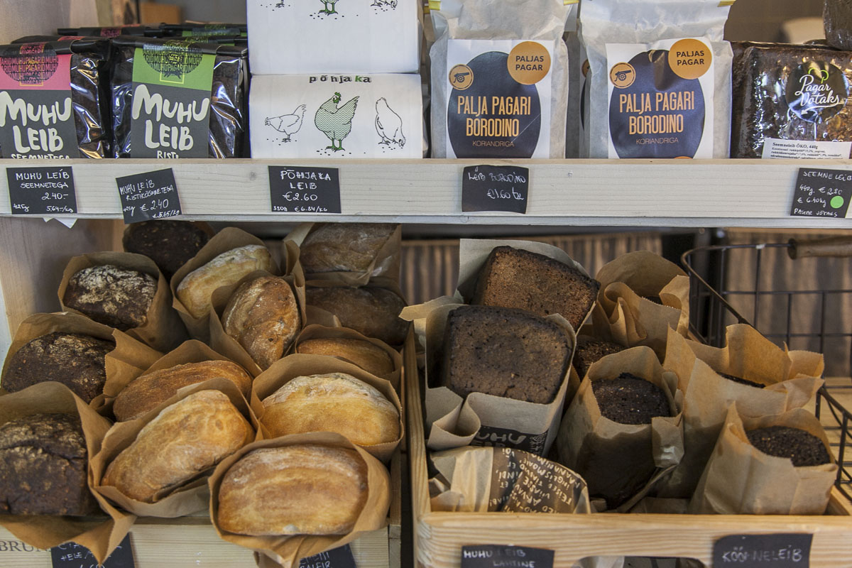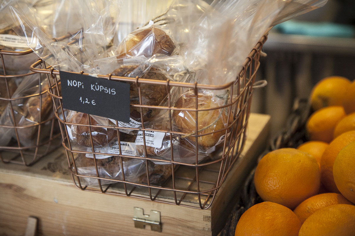 Nopin yhteydessä on myös orgaanista ruokaa myyvä pieni ruokakauppa, joka tuntuu olevan paikallisten keskuudessa aika suosittu sillä ovi on käynyt tiiviisti ainakin niinä kertoina kun olen siellä istuskellut. Tarjolla on niin tuoretavaraa, pakasteita, valmisruokia, leipiä kuin kaikenlaista raaka-ainettakin. Jos siis tällainen tarjonta kiinnostaa niin kannattaa käydä katselemassa. Erityisen herkullisilta näytti tuoreet leivät – mutta se tuntuu kyllä olevan asia, joka on muutenkin Virossa hanskassa. Hyviä uusia leipomoita syntyy kuin sieniä sateella, ja ravintolat tarjoavat toinen toistaan herkullisempia omia leipiään. Jos hiilareita yrittää vältellä (kuten minä toisinaan yritän), niin välillä tahdonvoimaa koetellaan oikein toden teolla!