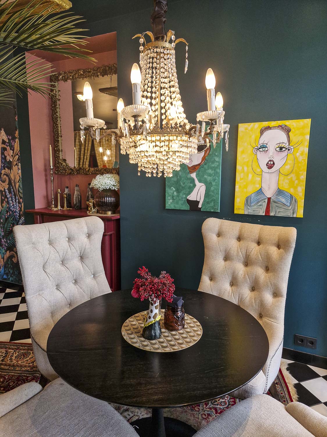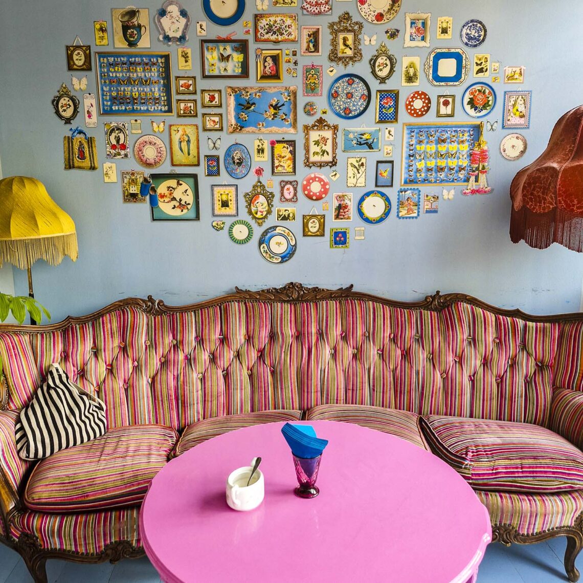 Suolaisia ja makeita minipannukakkuja ja muutakin syötävää niin villisti sisustetussa paikassa, että kannattaa mennä yksin sisustuksen vuoksi.
