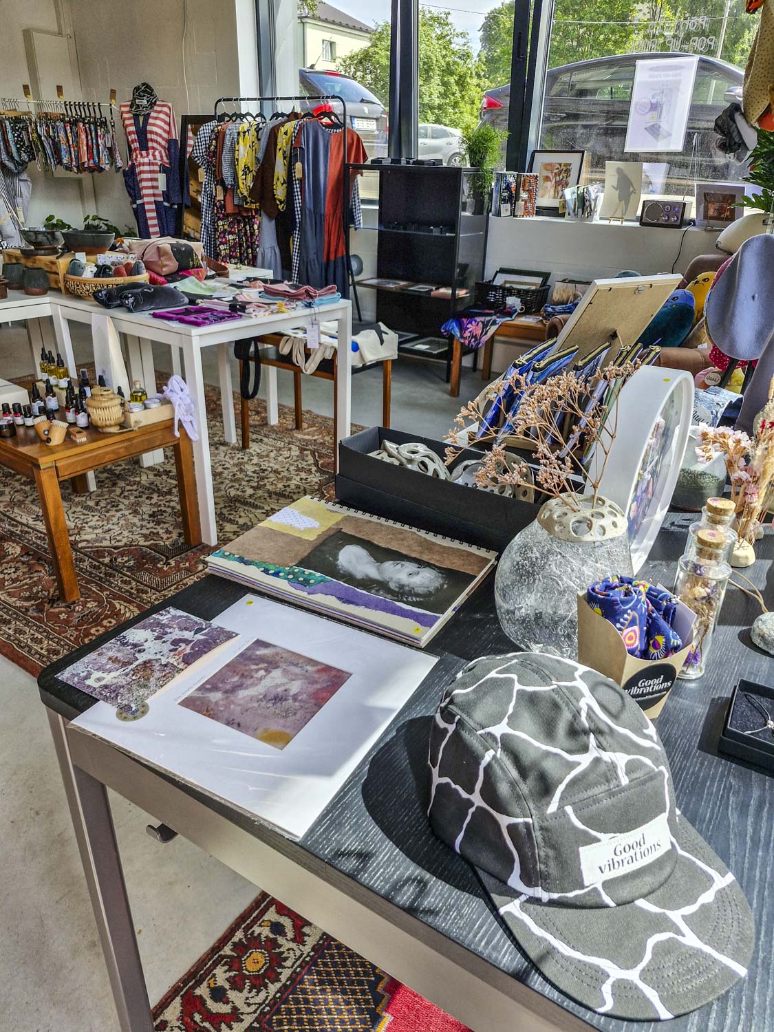 Olen huomannut, että Ankru 8:n kauppojen aukiolot vaihtelevat, joten kannattaa kävellä koko rivistö läpi ja katsoa mitkä ovista ovat oman visiittisi aikoihin auki. Itse olen tehnyt kivoja löytöjä mm. designereiden pop-up-myymälästä, ja ”ehkä haluaisin” -listalleni on jäänyt Good Vibrations -lippis.