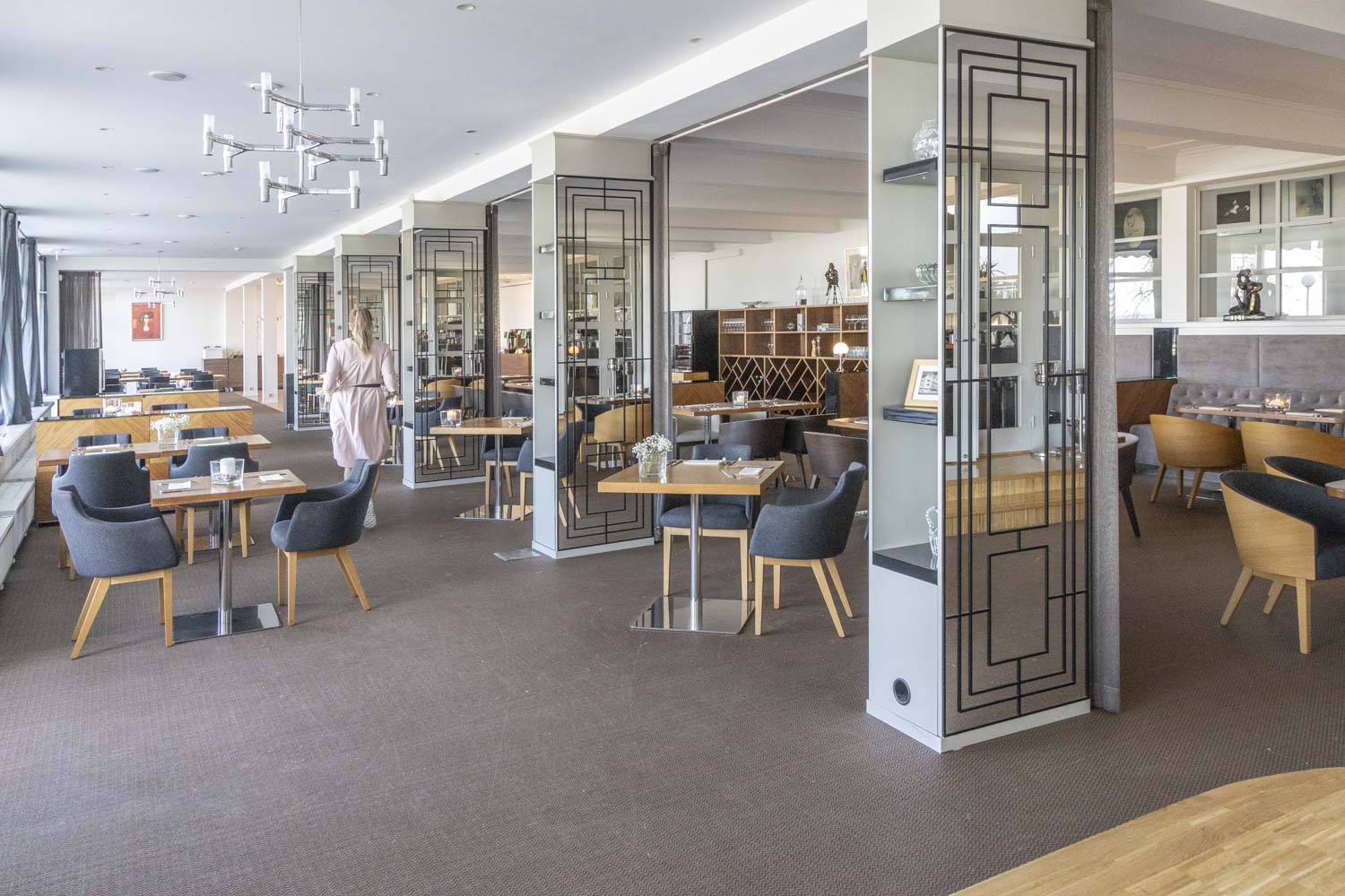 Hotellin nykyinen omistaja on remontoinut upean rakennuksen sen arvoon sopivalla tavalla ja tasolla – kokonaisuus saa haukkomaan henkeä. Tuntuu ja näyttää siltä, että joka ikinen yksityiskohta on hiottu funkisajan henkeen sopivaksi – jopa yleisissä tiloissa soiva taustamusiikki sopii tunnelmaan!