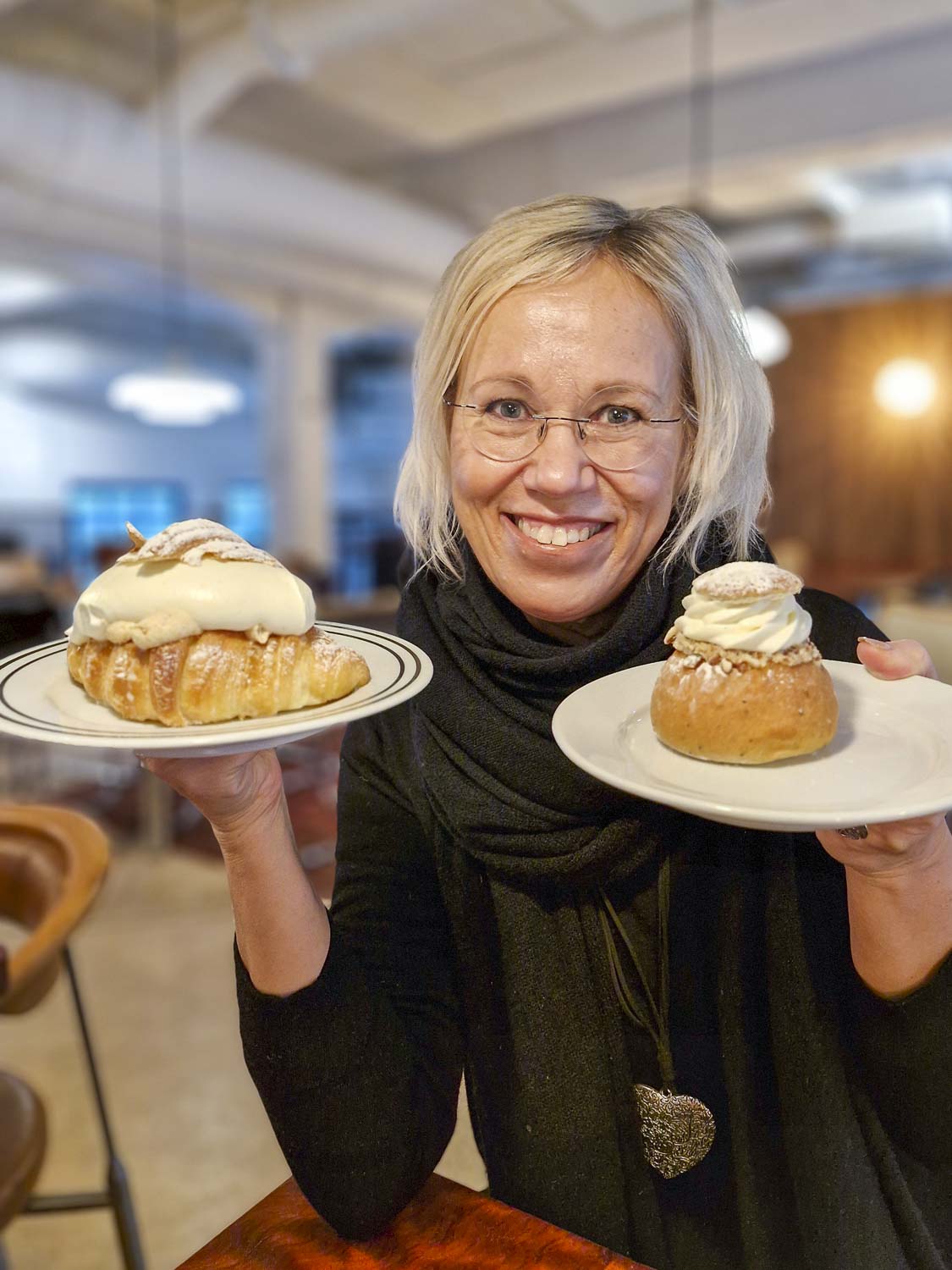 Vaikka laskiaispulla on Tallinnan laskiaispullafestivaalin päätähti, kahvilat ovat lähteneet kokeilemaan myös uusia versioita. Olen jo ehtinyt testata esimerkiksi laskiais-croissantin ja laskiais-cruffinin, joka on croissantin ja muffinsin hybridi.