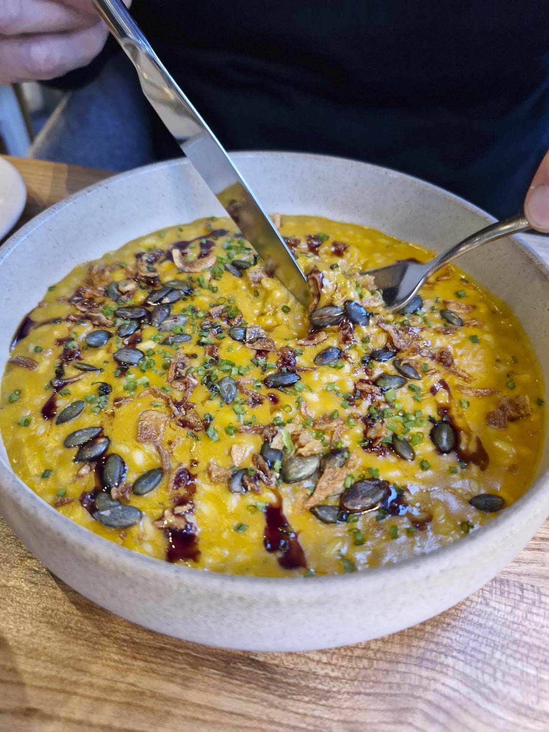 - Vegan V on joka visiitillä huikean hyvä, ja niin suosittu että pöydän saaminen pieni haaste. Kannattaa koittaa!